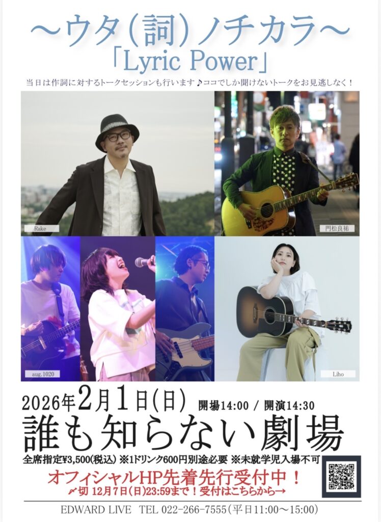■お問合せ先: EDWARD LIVE TEL 022-266-7555(平日11:00~15:00)